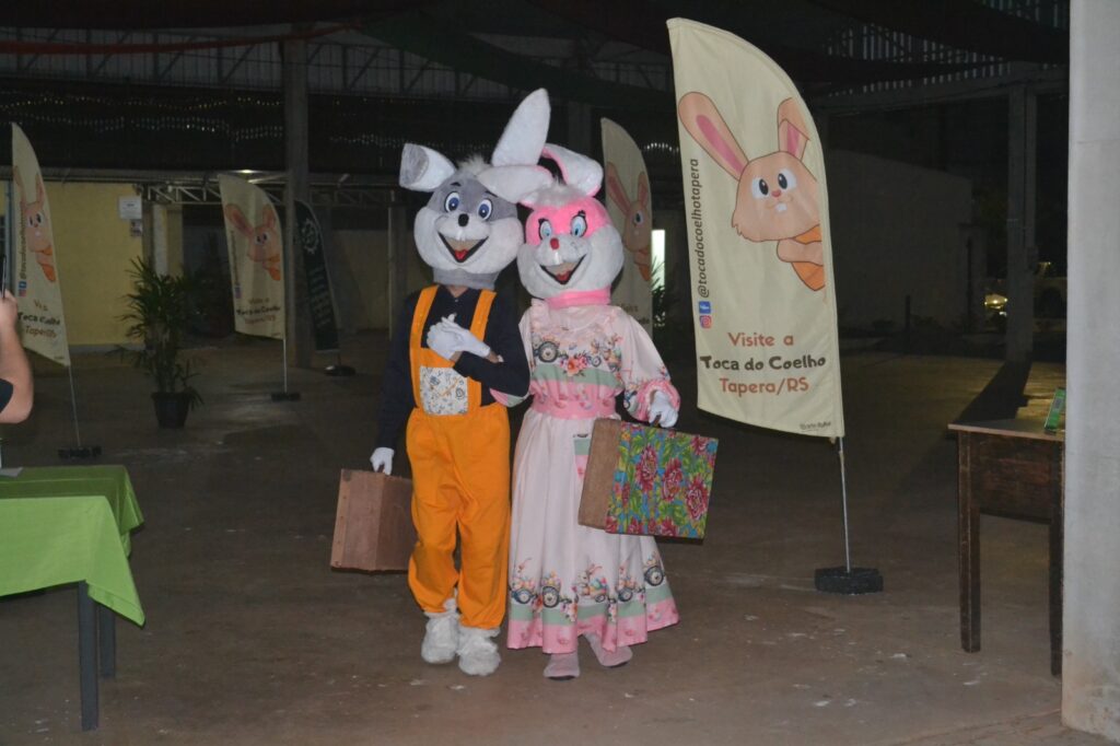O casal de coelhos marcou presença, reforçando o convite para a Toca do Coelho Tapera. A programação terá início no dia 26/03, com a encenação de Páscoa, no Centro de Eventos. De 27/03 a 05/04, as atividades acontecerão no Tenarião. A maior parte da programação será gratuita, com exceção da visitação aos cenários.