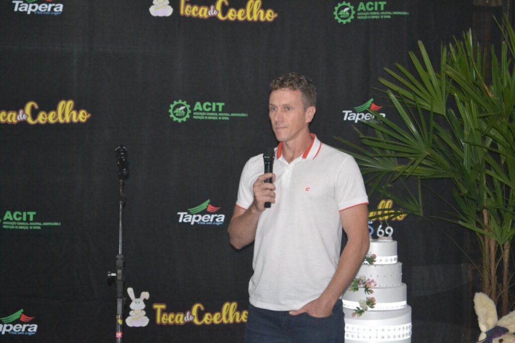 O presidente da entidade, Ricardo Feldmann Moraes, ressaltou o compromisso da ACIT com os associados e com o município de Tapera. Ele agradeceu o emprenho de todas as pessoas na realização da Toca do Coelho Tapera e citou os patrocinadores já confirmados: Sicredi, Signor, Cotrisoja, Sicoob, Fepol, Cooperativa Santa Clara, Postos Simon, e os apoiadores: Secretaria de Desenvolvimento Rural do Estado – Emater, ATUA Internet, Kelly Lopes Assessoria e Eventos. “Não fazemos nada sozinhos e o auxílio de todos vocês, de patrocinadores a voluntários, é fundamental para que o evento seja um sucesso”, comentou.